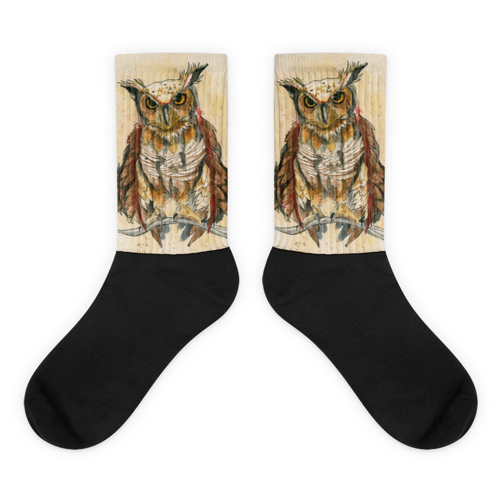 These socks are extra comfortable thanks to their cushioned bottom. The foot is black with artwork printed along the leg with crisp, bold colors that won't fade.