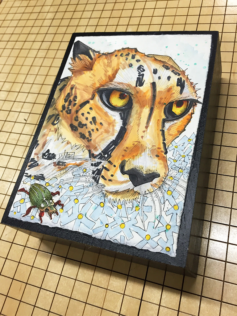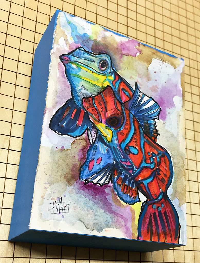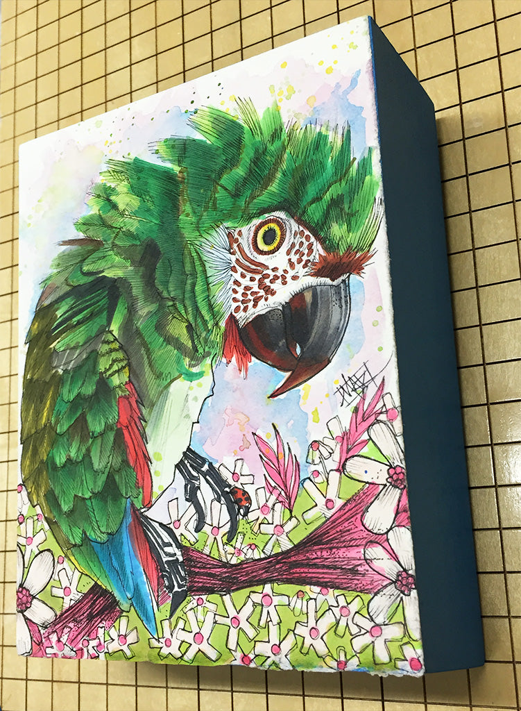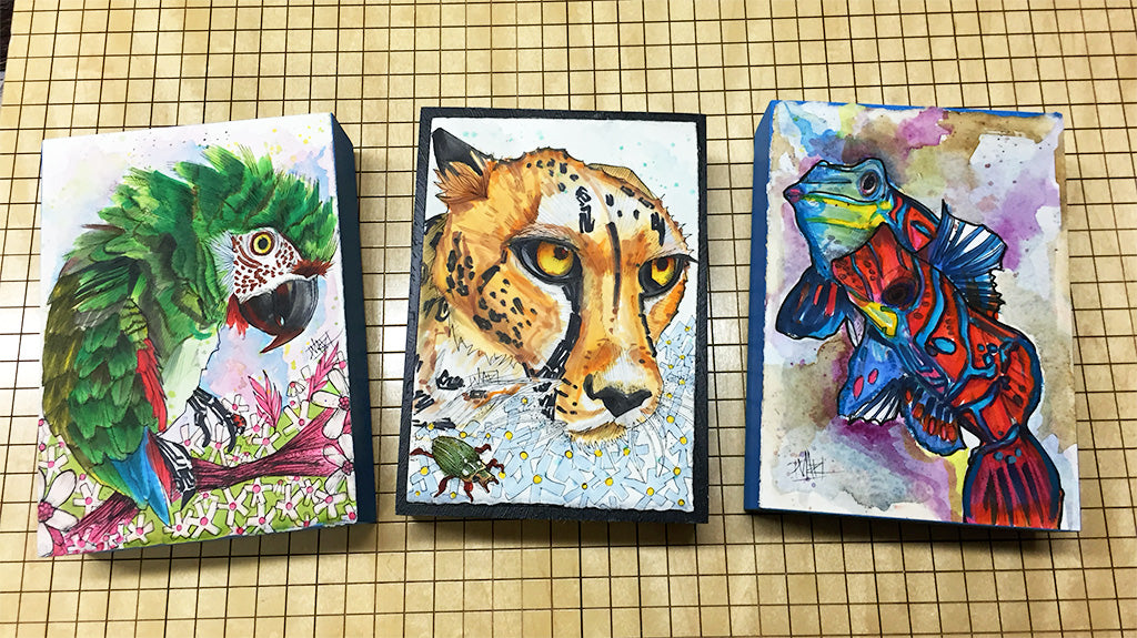 Small scale original illustrations. Drawn on cold press water color paper and dry mounted onto cradled wood panel and ready to hang. Mini totems are created using archival materials. They are coated with a UV protectant and fixative sealant to ensure a long life!
