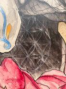 Representing strength, family, and community; stable and wise, elephants remember their dead and maintain rituals. Even their young learn to mourn ancestors they never personally met. Hummingbirds have been known to show up in the spirit of lost loved ones. This Día de los Muertos-themed piece is a tribute to family remembrance.