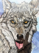 I'm beyond excited to share this piece with you. I began thinking about it back in summer 2019 and started on it last winter. I aimed to finish by spring, however when the world shut down it became a rare opportunity to really sink my teeth into this creation. It served as a de facto time capsule: the multicolored background carries hues of California's many 2020 skies, from early pandemic clear to ash covered, The Orange Day to regular 'ole smoggy sunsets. Its concept felt worthwhile at the onset and grew more timely as the year's events unfolded; this piece was an exploration of the relationship between cooperation, abundance, and shared prosperity. Through countless hours of India ink pen strokes in the tundra wolf's fur and the raven's wings, layer upon layer of watercolor, research, observation, self reflection and finally gold leaf embellishment, I'm proud to share with you "We're All Just Walking Each Other Home."