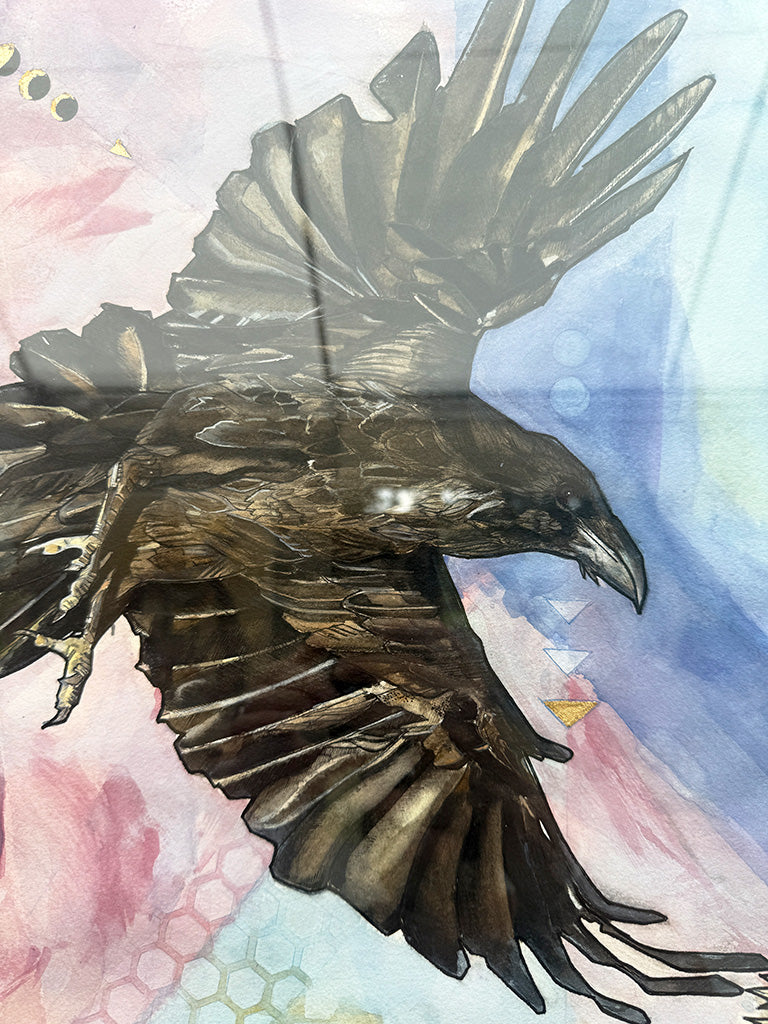 The different directions emanating from the raven, highlighted by various symbols, indicate points of prosperity and abundance. The lotus flower, ancient and able to survive the harshest conditions, produces beautiful, clean blooms daily with roots in the dirtiest waters. It's the perfect symbol of our growth and adaptation through continual mindfulness.