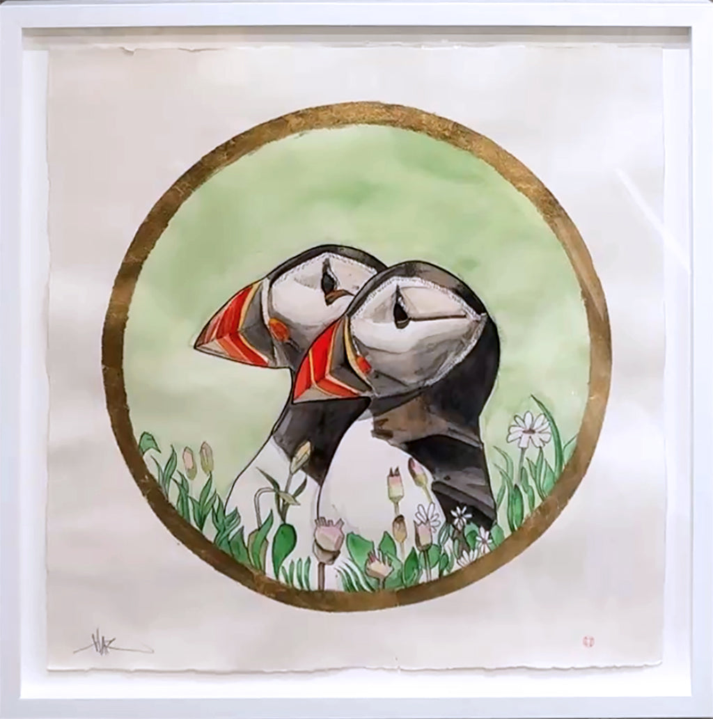 (2025) 22" x 22" Ink and watercolor illustration on cold press watercolor paper with gold leaf embellishment. Float mounted in a custom cut frame set behind museum quality clear acrylic.