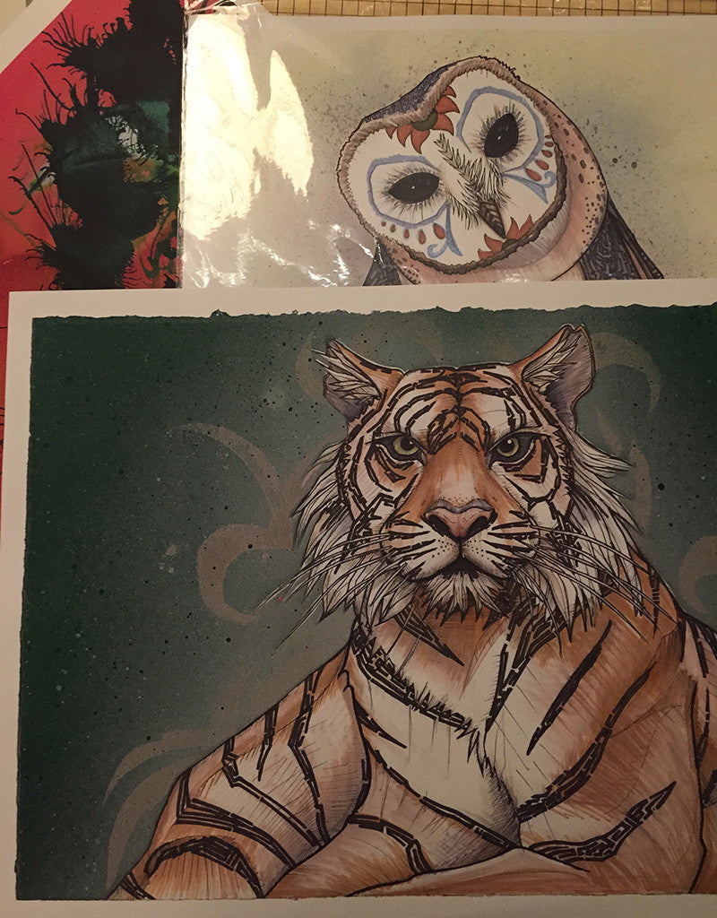 18" x 24" posters printed with archival inks on thick, glossy coated poster paper. Also printed with white border and includes hand written titles and artist's signature.