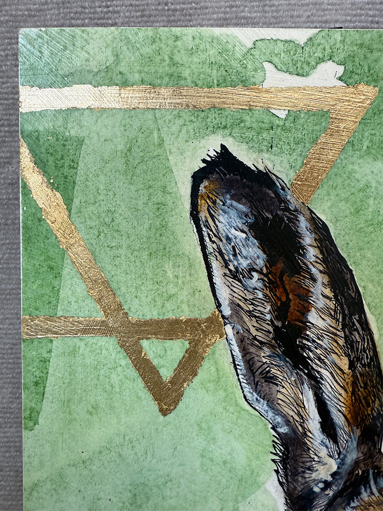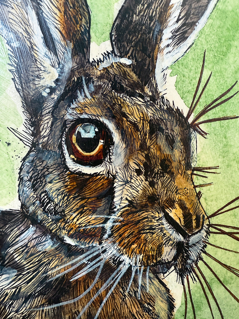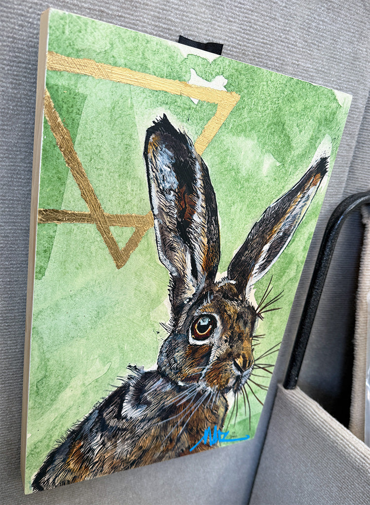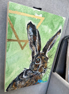 "Hare Before, Trouble Behind" mounted on cradled wood panel. The reproductions are hand embellished with an acrylic medium for finish and protection and are ready to hang. All mounted reproductions are limited edition, signed and numbered by the artist.